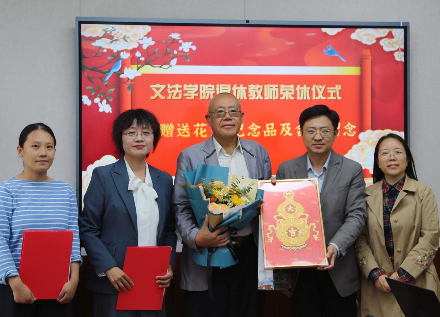 李虹代表学院向光荣退休的徐家力老师致以诚挚感谢和崇高敬意,向新加入文法大家庭的教师表示热烈欢迎。